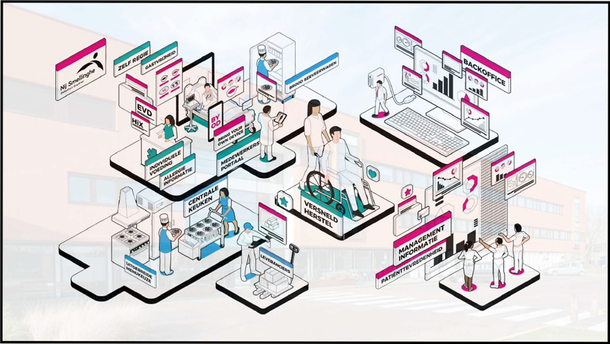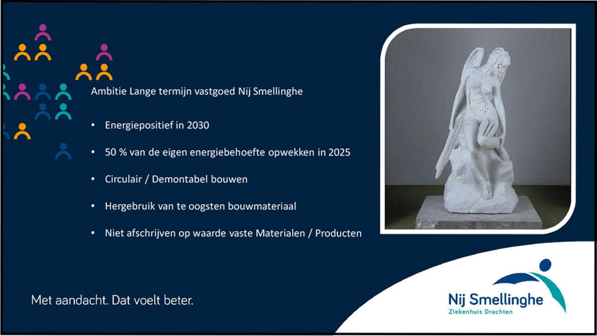 Daarna vertelde Folkert Brouwers bevlogen over de ambities en al behaalde resultaten rondom duurzaam vastgoedbeheer, gevolgd door Harry Gerritsma, die ons meenam in het vernieuwende voedingsconcept waar patiënten alle regie krijgen en de keuken vers, lokaal en gezond centraal staat.